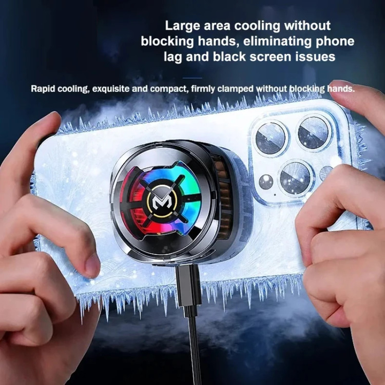 فن خنککننده انجمادی گوشی موبایل ممو مدل CX06، با بهره مندی از تکنولوژی یخچال نیمه هادی و هیت سینک رادیاتوری و مجهز به فن خنک کننده مغناطیسی به نحوی طراحی شده که در حین انجام کارهای سنگین و بازی هایی مانند کال آف دیوتی call of duty و پابجی PUBG خیال شما را از دمای گوشی موبایل تلفن همراهتان راحت کند. این فن خنک کننده هم مجهز به مگ سیف برای گوشی های دارای این قابلیت بوده و هم دارای صفحه فلزی دایره ای برچسب دار برای اتصال به گوشیها و تبلتهای بدون مگ سیف است همچنین این محصول دارای کلیپس هایی با لبه سیلیکونی و نرم است که به شما اجازه استفاده از آن برای هر مدل گوشی و تبلت را میدهد. این فن قدرتمند توسط کابل و شارژر 15 وات (آداپتور 5v-3a) خنک کنندگی بی نظیری برای حفاظت از گوشی شما بوجود میآورد. سرعت چرخش فن بیصدای آن 6000 دور در دقیق بوده و از RGB رنگارنگ حین استفاده بهره میبرد همچنین دارای دکمه تنظیم سه سطح قرت خنک کنندگی و روشن خاموش حین استفاده است. پک این محصول شامل یک دستگاه خنک کننده انجمادی CX06 به همراه کابل اتصال، صفحه مغناطیسی برچسبی و دو عدد کلیپس اتصال میباشد.