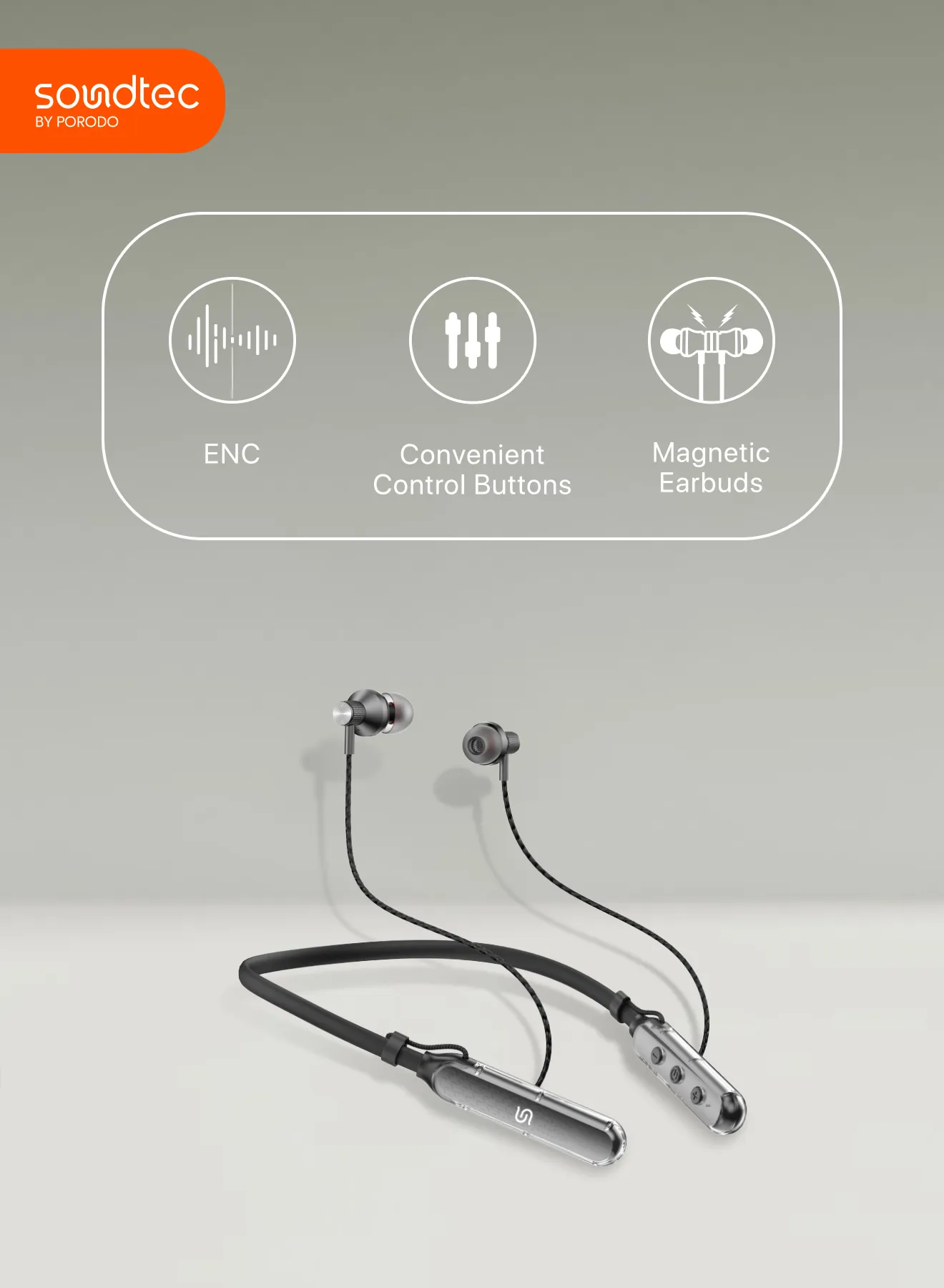 هندزفری بلوتوث گردنی Porodo Soundtec PD-STWLEP017