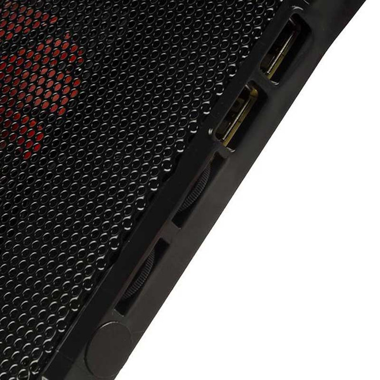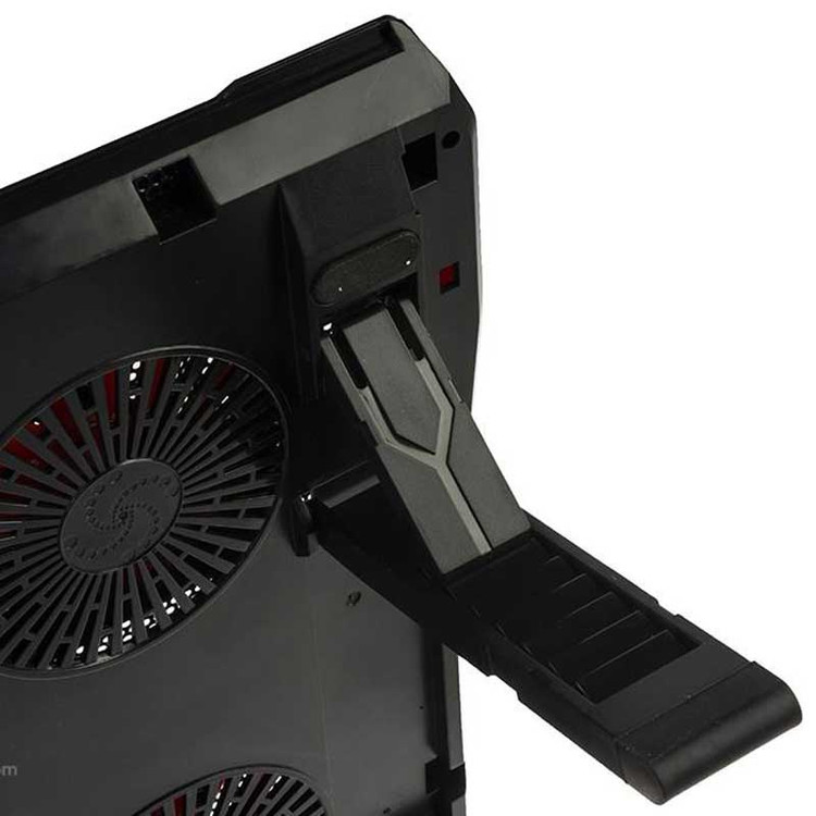 بدنه ساخته شده از جنس پلاستیک ABS مقاوم در برابر فشار و ضربه و فلز، دارای قابلیت تنظیم ارتفاع، برخورداری از ۲ عدد پورت USB بر روی بدنه ۵ عدد فن خنک کننده در سایز های متفاوت با حداکثر سرعت چرخش ۱۲۰۰ دور در دقیقه و توان خروجی ۱٫۷۵ وات مناسب برای لپ تاپ های با حداکثر سایز ۱۵٫۶ اینچ
