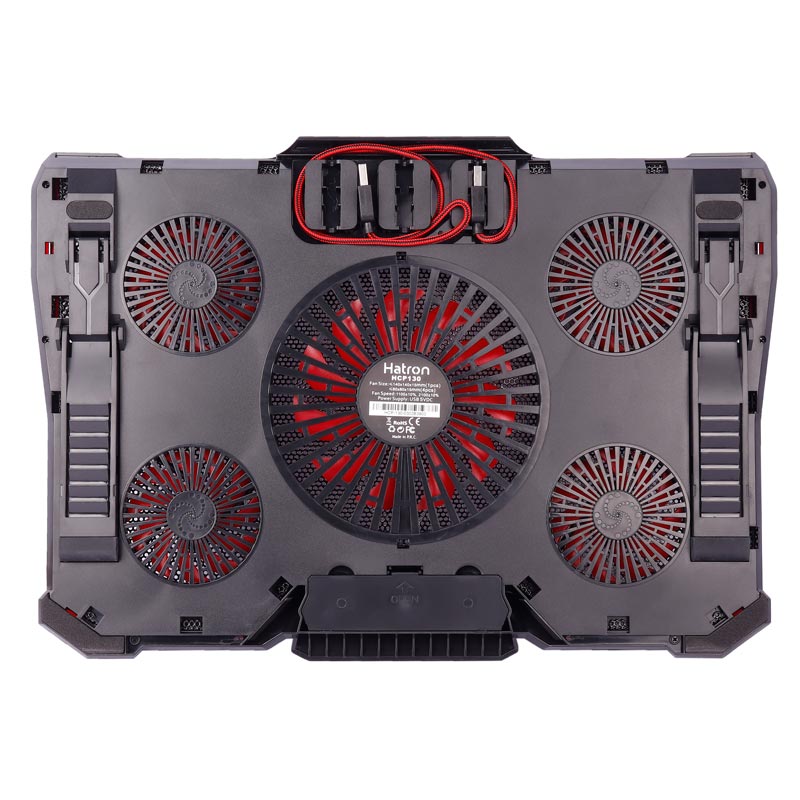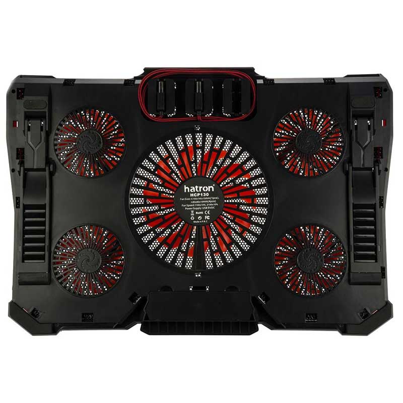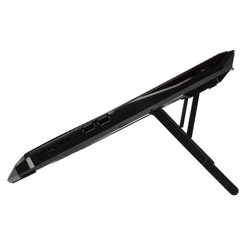 بدنه ساخته شده از جنس پلاستیک ABS مقاوم در برابر فشار و ضربه و فلز، دارای قابلیت تنظیم ارتفاع، برخورداری از ۲ عدد پورت USB بر روی بدنه ۵ عدد فن خنک کننده در سایز های متفاوت با حداکثر سرعت چرخش ۱۲۰۰ دور در دقیقه و توان خروجی ۱٫۷۵ وات مناسب برای لپ تاپ های با حداکثر سایز ۱۵٫۶ اینچ