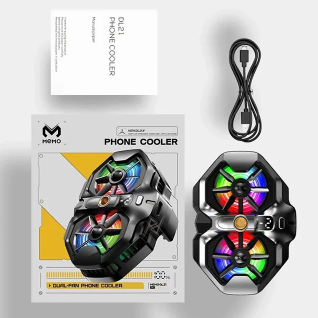 فن خنک کننده دوگانه گوشی موبایل ممو Memo DL21 یک فن خنک کننده مخصوص موبایل با قدرت خنک کنندگی بسیار بالاست که با انواع گوشی های موبایل iOS و اندروید با عرض 60 تا 85 میلی متر سازگار است. این فن گیمینگ موبایل دارای سیستم خنک کنندگی بر پایه هیت سینک است. فن رادیاتور خنک کننده ممو DL20 میتواند در عرض تنها چند ثانیه دمای گوشی موبایل و باتری آن را پایین بیاورد.