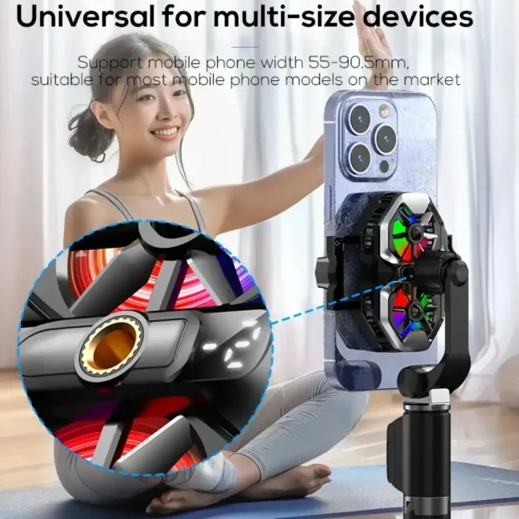 امروزه فن های خنک کننده علاوه بر بازی برای استریم کردن یا تماشای فیلم هم استفاده می شوند. برای همین است که کمپانی ممو، محلی برای پیچ کردن مونوپاد، سه پایه و انواع استند های سازگار با این پیچ، روی این خنک کننده تعبیه کرده است. اگر با موبایلتان ویدیو می گیرید، استریم می کنید یا محتوا می سازید و می خواهید از سلامت موبایل و باتری آن محافظت کنید، می توانید این خنک کننده را روی موبایلتان قرار دهید و سپس آن را به پایه پیچ کنید. به این شکل، دمای گوشی موبایل شما حین استریم، فیلم برداری و … کنترل می شود، موبایل داغ نمی کند و لگ نمی گیرد. با استفاده از این خنک کننده، اپلیکیشن ها و برنامه های مختلف و به خصوص بازی ها، به صورت روان اجرا می شوند.