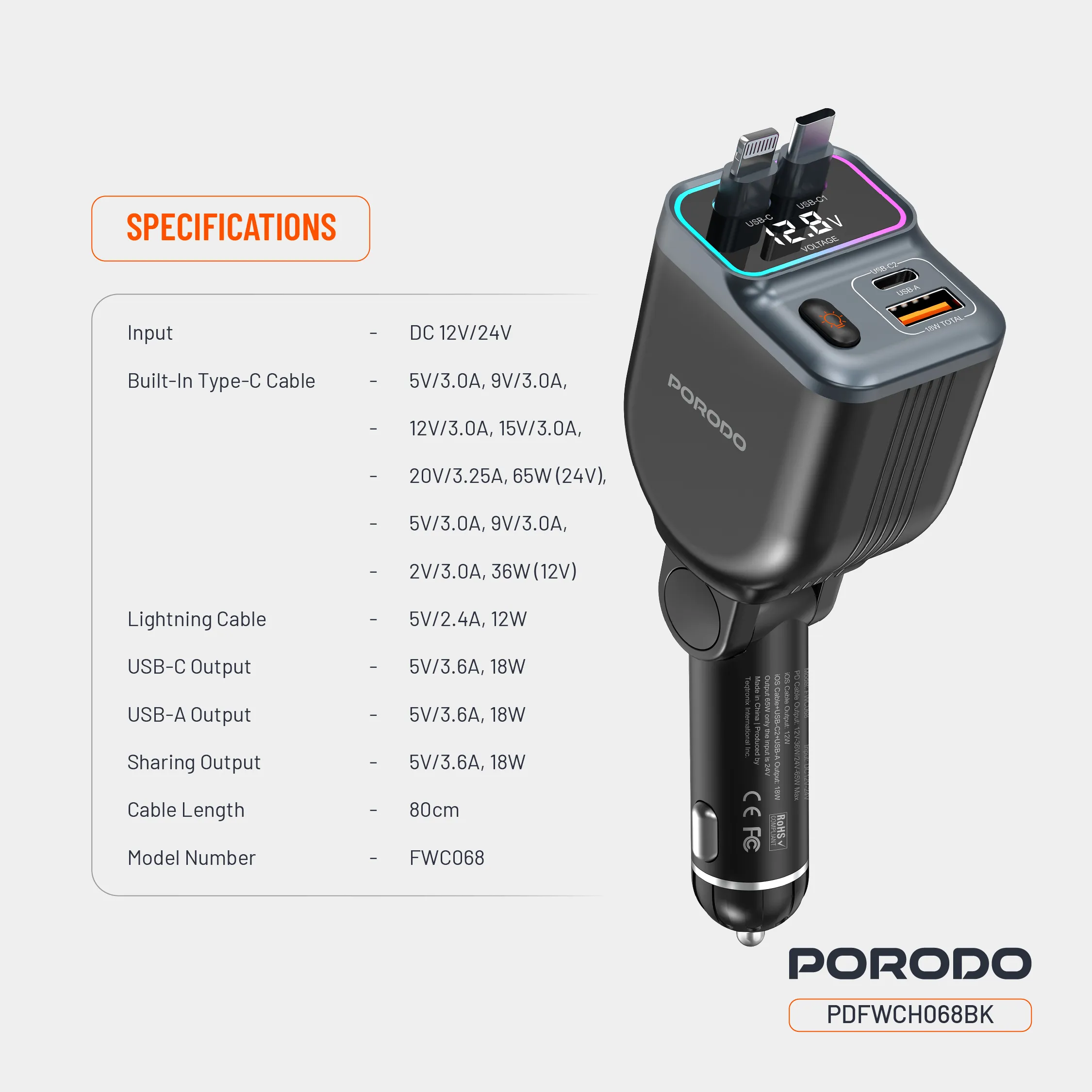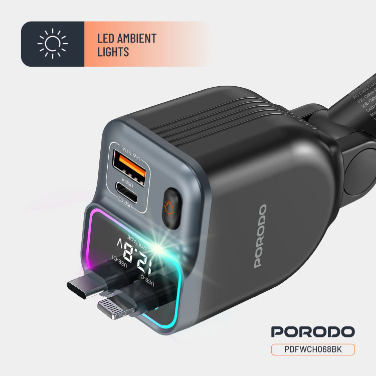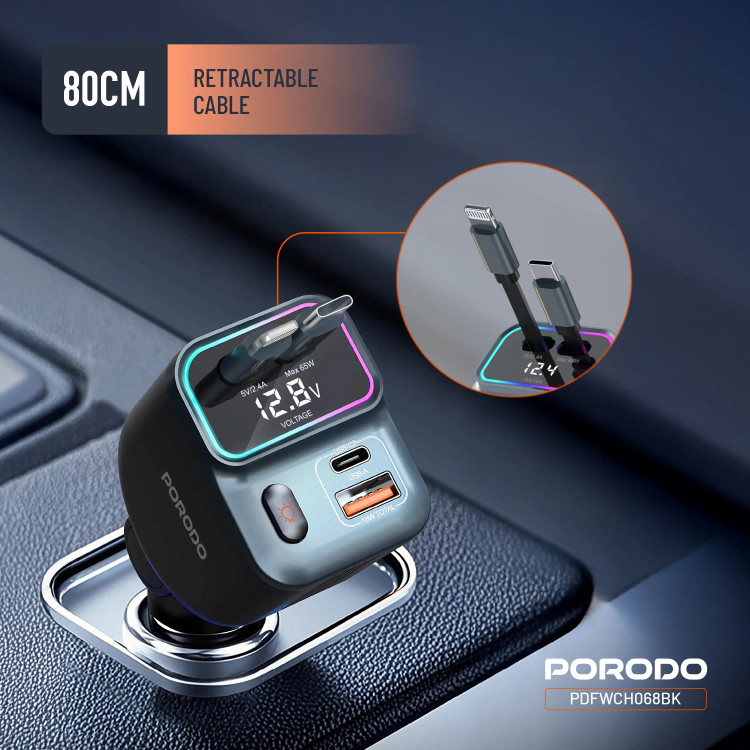 شارژر فندکی و کابل فست Porodo PDFWCH068 65W