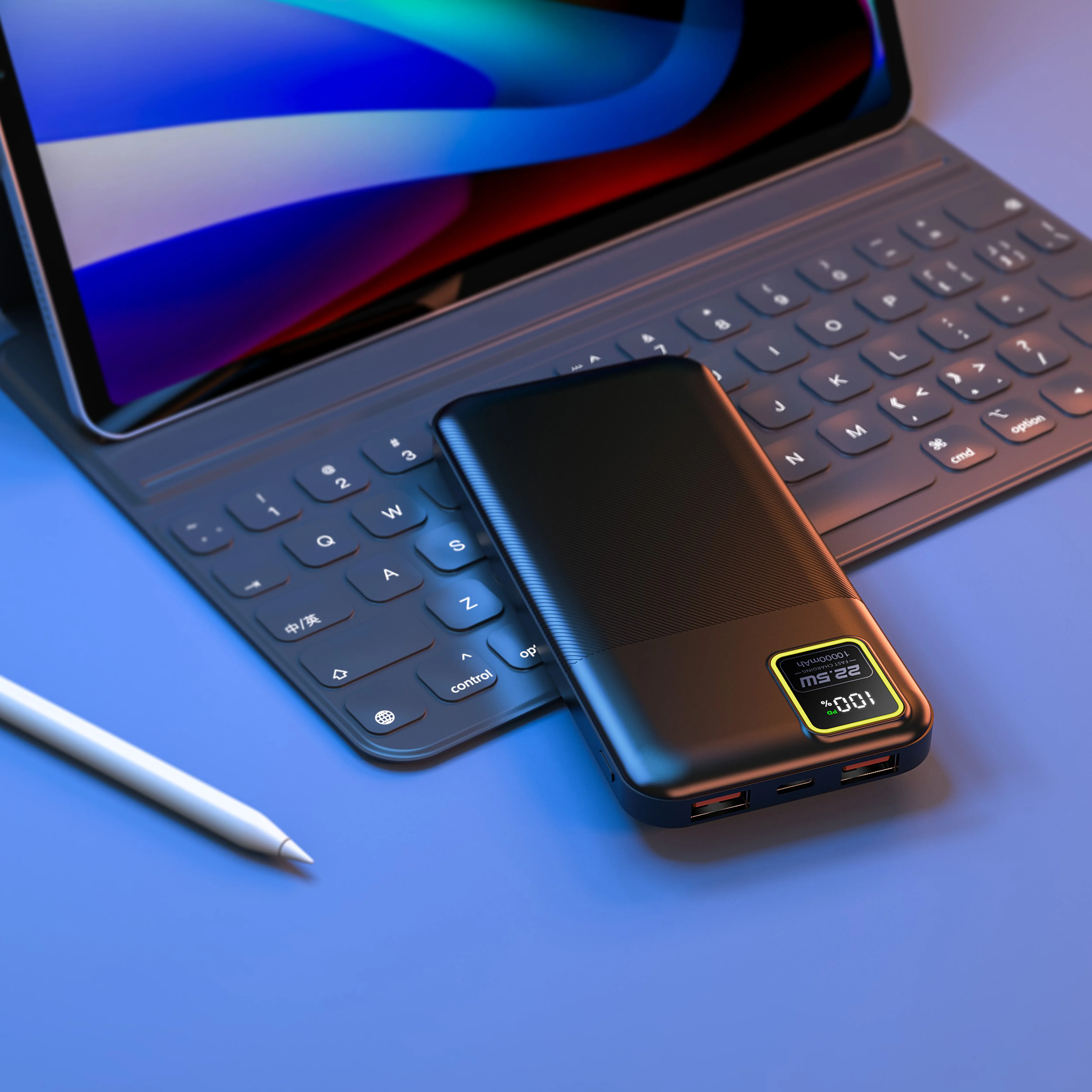 پاوربانک Porodo Blue با توان 20 وات، شارژ سریعی را برای شما فراهم میکند و تنها در 35 دقیقه از 0% تا 65% شارژ میشود. خروجی 22.5 واتی دوگانه QC 3.0 USB-A آن، شارژ کامل گجتهای شما را بسیار آسان میکند و دارای ظرفیت باتری 10000 میلیآمپر ساعت با ماندگاری بالا است. همچنین دارای یک صفحه نمایش دیجیتال کوچک برای نمایش وضعیت باتری است. با طراحی سبک و جذاب، به شما این امکان را میدهد که به راحتی آن را در سفرها یا هر کجا که میروید حمل کنید، در حالی که ظاهری شیک و زیبا دارد