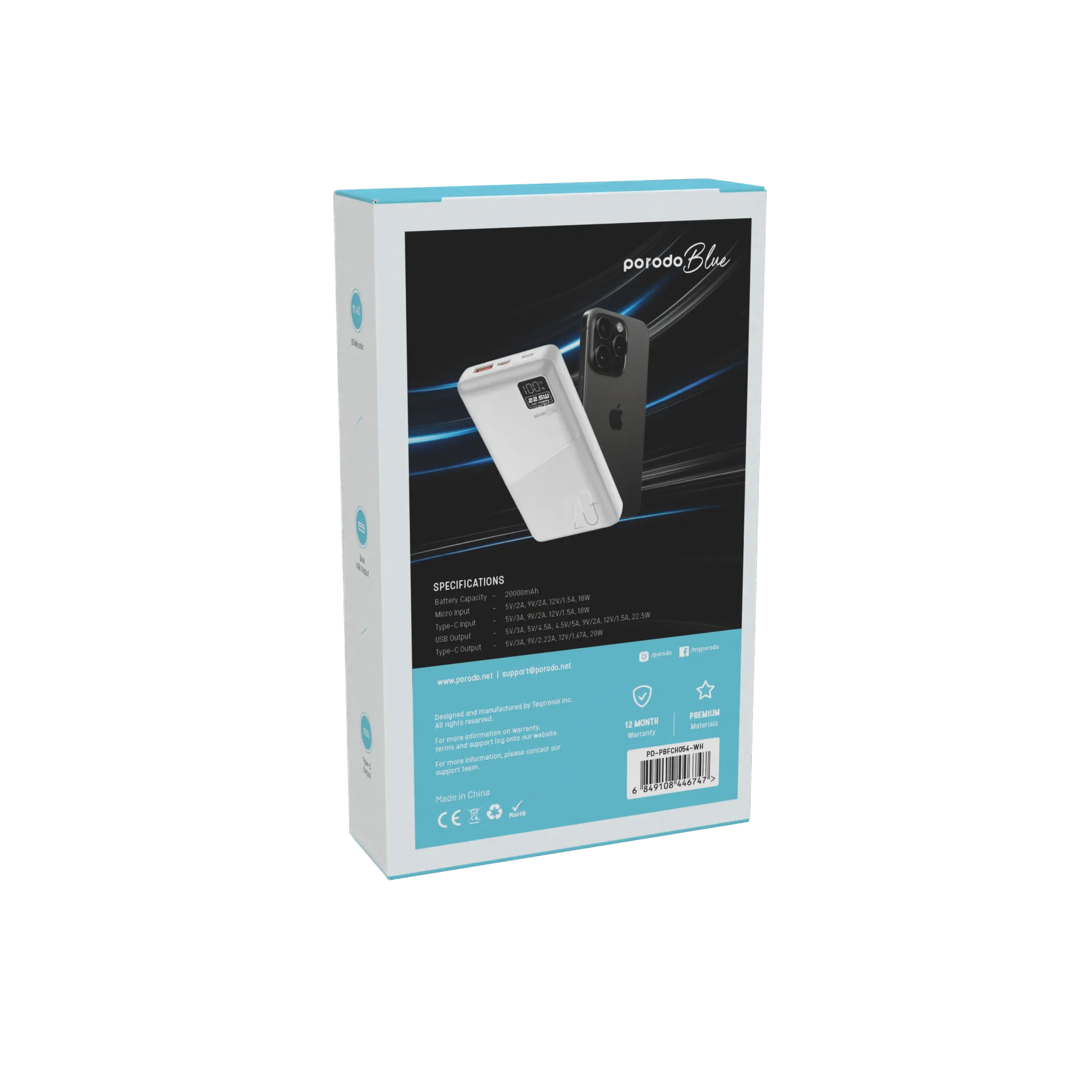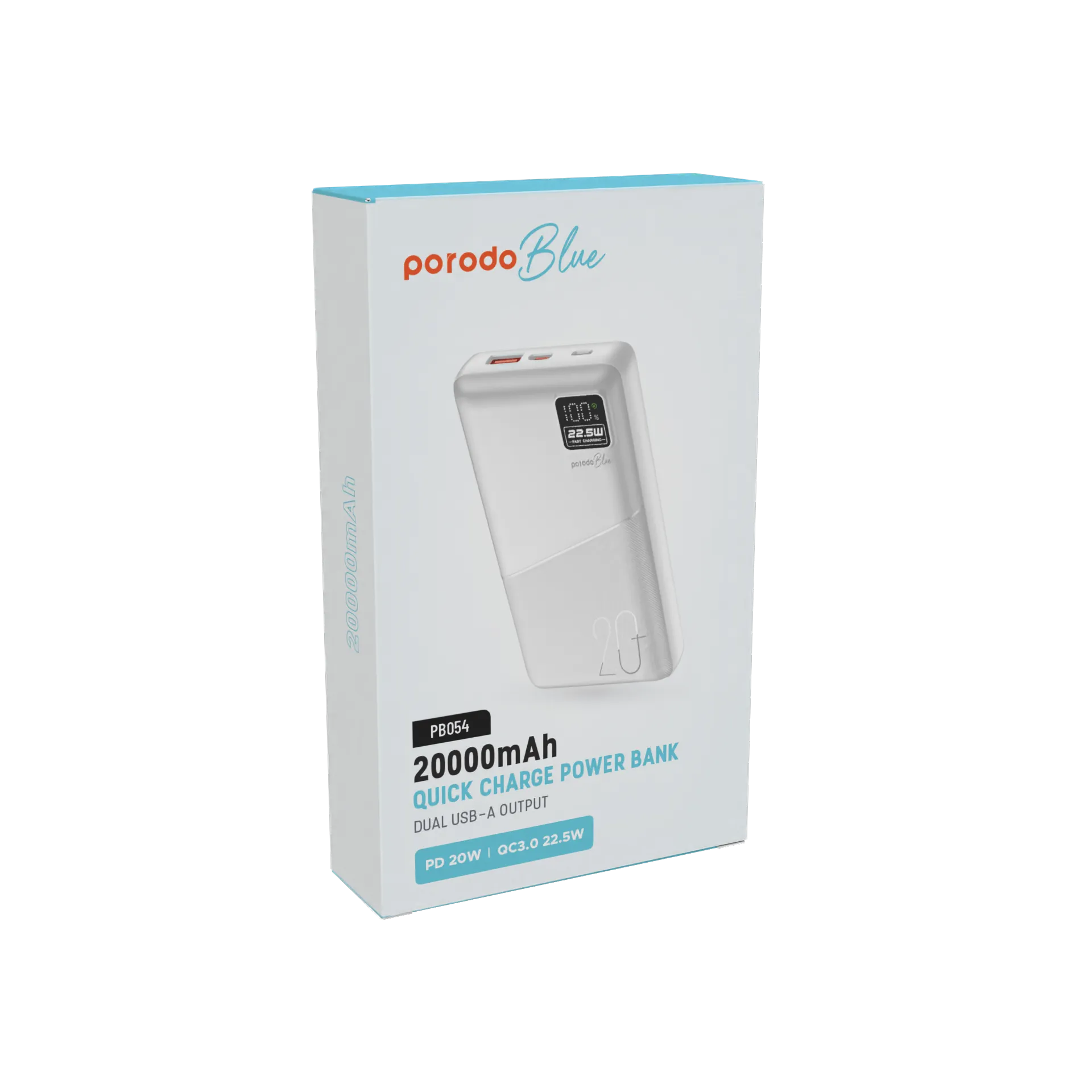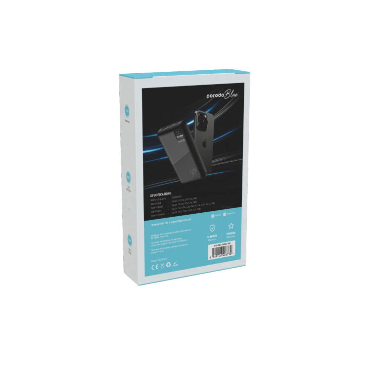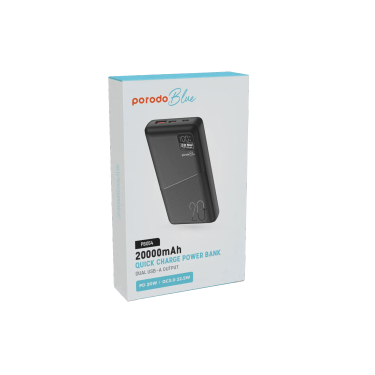 تصور کنید که بیرون میروید و فراموش میکنید گوشی خود را شارژ کنید. تنها راه حل، پاوربانک Porodo Blue با ظرفیت باتری 20000 میلیآمپر ساعت است. این محصول جدید میتواند دستگاهها را در عرض 35 دقیقه از 0٪ تا 65٪ شارژ کند. فناوری شارژ سریع برای یک سیستم شارژ روزانه ضروری است. این پاوربانک مجهز به دو خروجی USB است که به کاربران کمک میکند تا دو گوشی را به طور همزمان شارژ کنند. همچنین، خروجی نوع C با طیف گستردهای از دستگاههای مدرن سازگار است. پاوربانک Porodo Blue به دلیل سیستم شارژ سریع و وزن سبک، یک همراه ضروری است