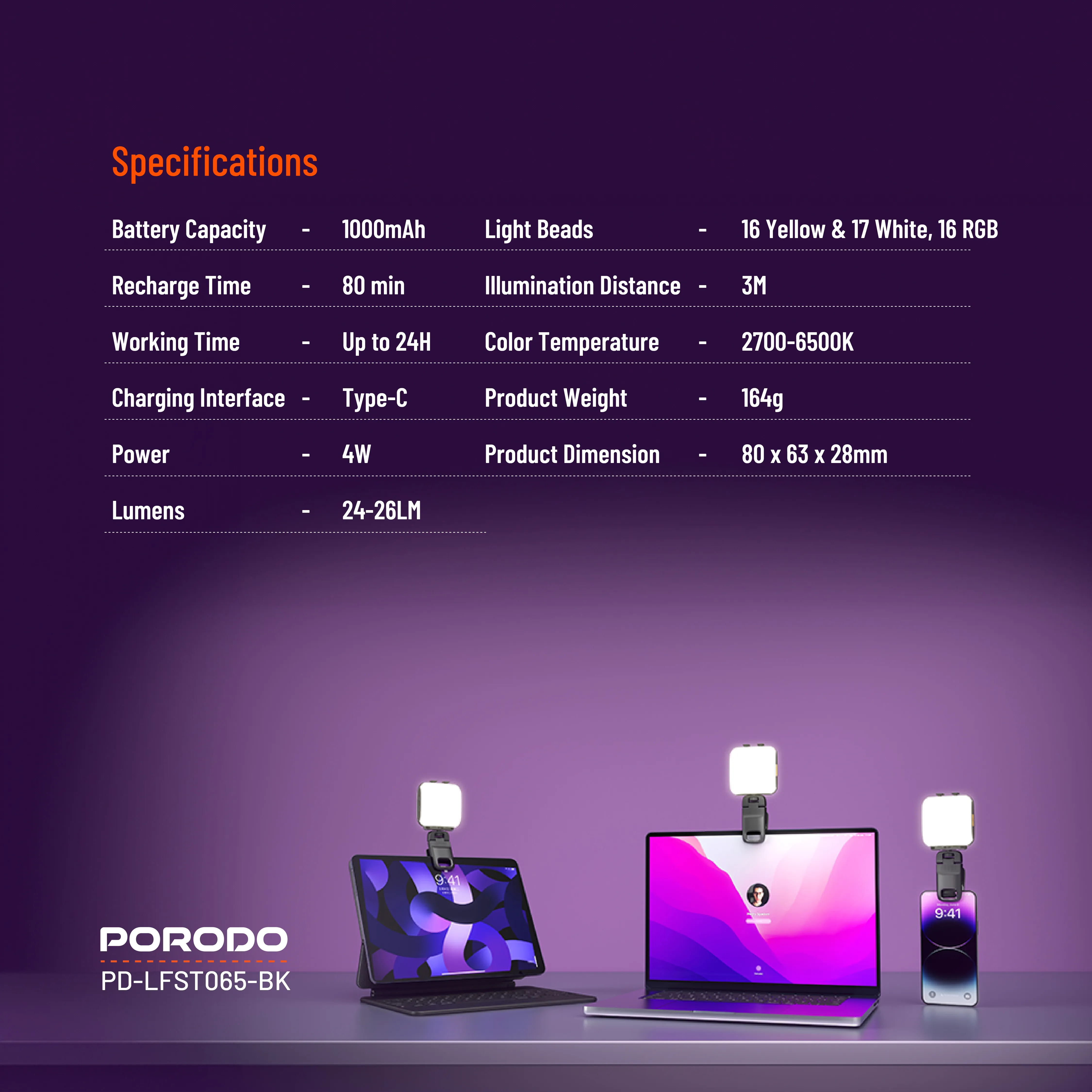 ویژگی های خاص: دارای سه پایه / سازگاری با پایه های دیگر / 3 چراغ RGB / 3 دمای رنگ