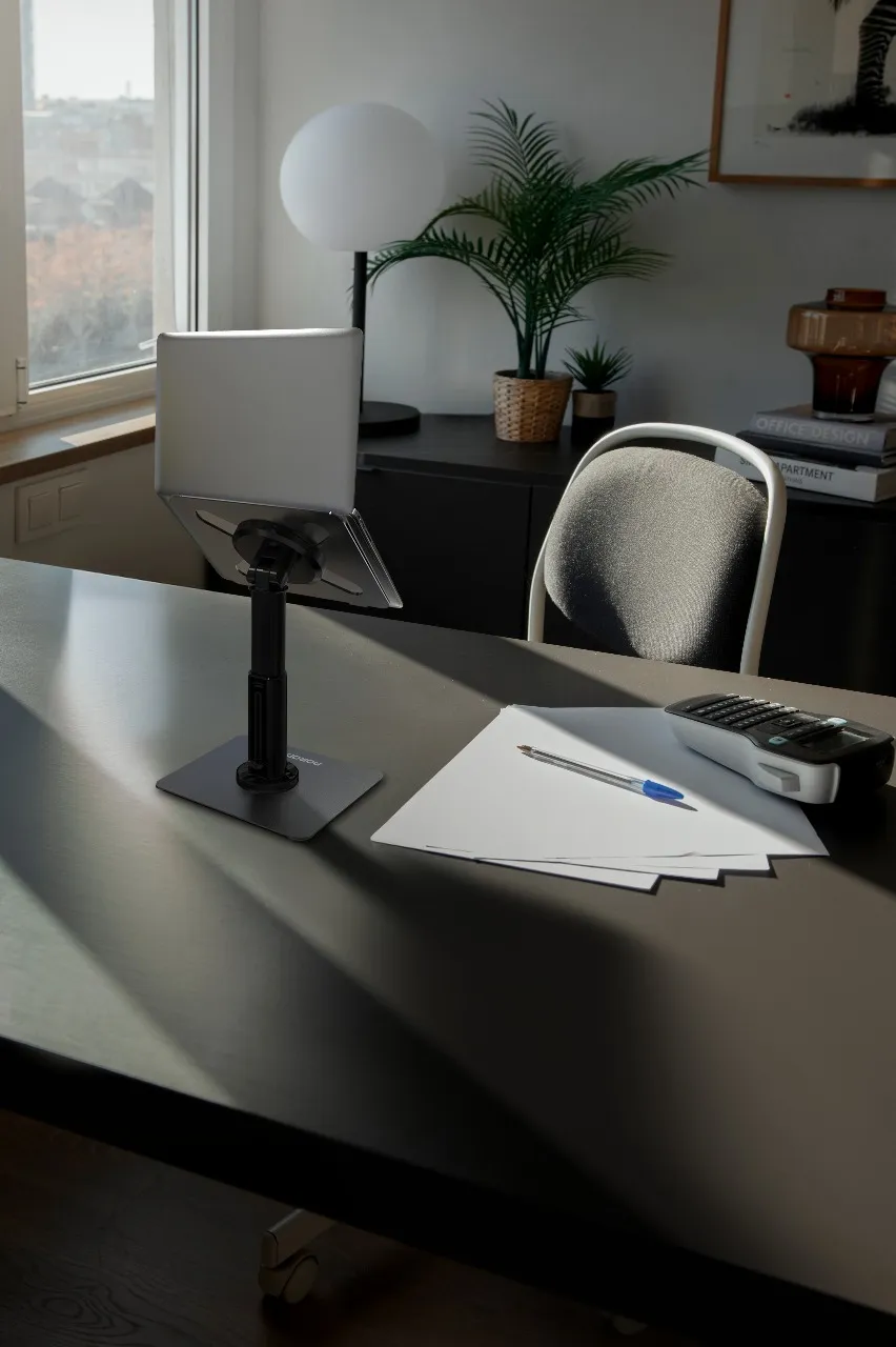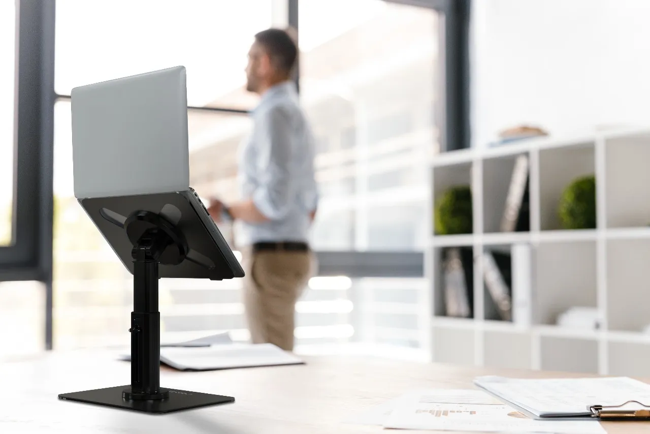با هدف ارائه ارگونومی در هنگام تایپ با لپتاپ یا تبلت شما طراحی شده است. ترکیبی از ABS با کیفیت بالا، سیلیکون و فلز به این پایه چند زاویهای، پایداری و طول عمر بالایی میبخشد. این پایه با دستگاههای ۱۱ تا ۱۷.۳ اینچی سازگار است و دارای یک میله تلسکوپی است. میتوانید ارتفاع سکو را بین ۳۴ سانتیمتر تا ۴۳ سانتیمتر تنظیم کنید. این پایه تا وزن ۱.۹ کیلوگرم را تحمل میکند. این پایه به اندازه کافی محکم است تا دستگاههای بزرگتر را نگه دارد. پایه ضد لغزش، دستگاه را در حین کار، حتی اگر روی سطوح صاف قرار گیرد، محکم در جای خود نگه میدارد. سازگاری جهانی، راهحلی را ارائه میدهد که به طور گسترده برای لپتاپها و تبلتها در مطالعه یا سرگرمی قابل استفاده است. این پایه علاوه بر تنظیم چند زاویهای، به راحتی و بهرهوری شما کمک میکند و در عین حال وضعیت بدن را بهبود میبخشد و فشار را در ساعات کاری طولانی کاهش میدهد.