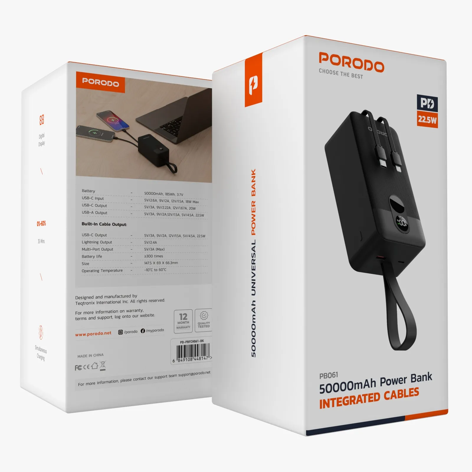 پاور بانک و کابل فست شارژ Porodo PD-PBFCH061 50000mAh