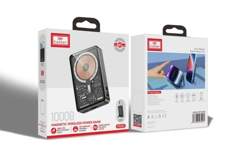 پاور بانک بی سیم فست شارژ ارلدام ET-PD20 PD 15W ظرفیت 10000 میلی آمپر ساعت