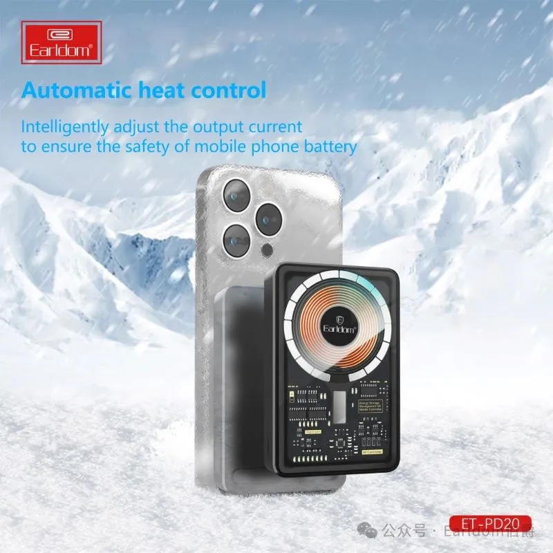 پاور بانک بی سیم فست شارژ ارلدام ET-PD20 PD 22.5W ظرفیت 10000 میلی آمپر ساعت