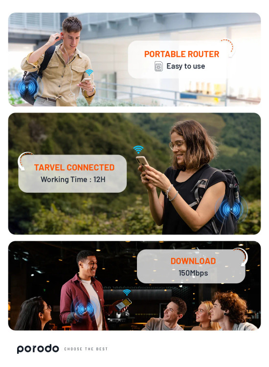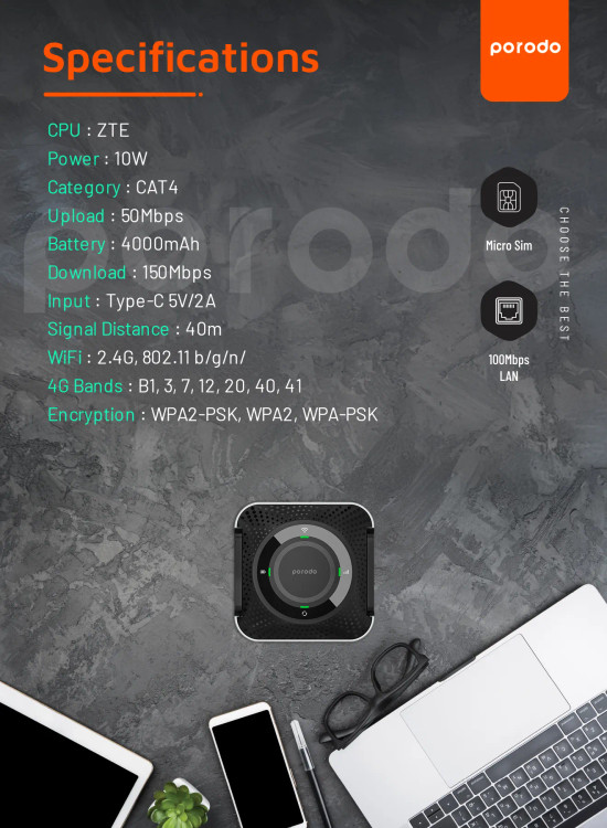 مودم بیسیم قابل حمل Porodo PD-4GCPMF CPE MiFi 3G/4G