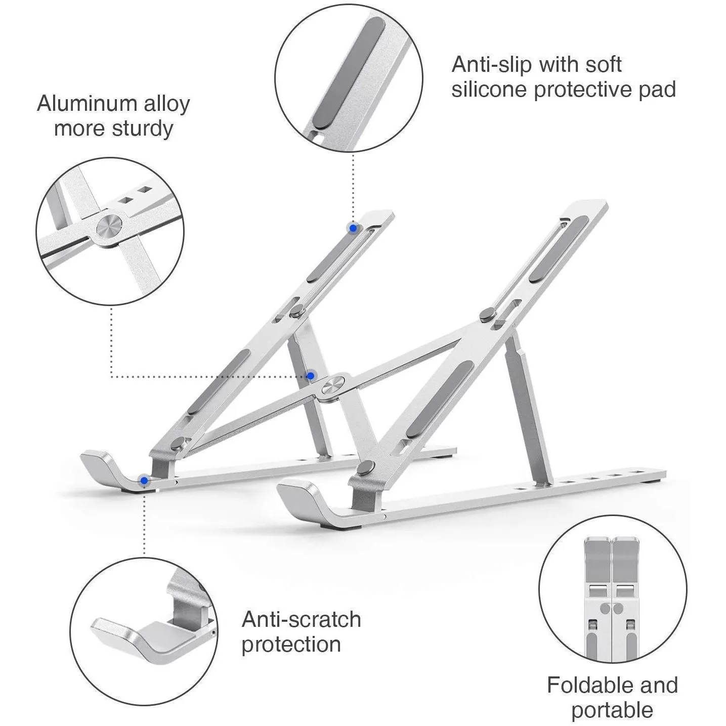 استفاده از سیلیکون برای جلوگیری از لغزش و آسیب به قاب لپ تاپ و ...، امکان جمع شدن بدنه، همراه کیف جهت حمل استند