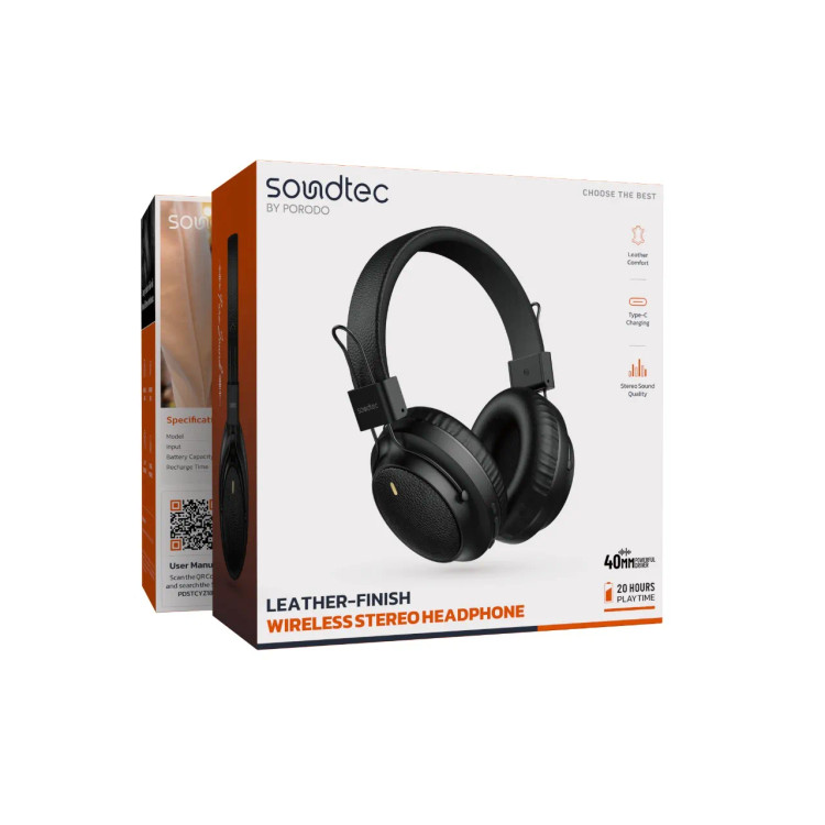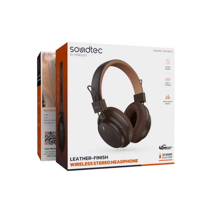 Porodo Soundtec PDSTCYZ18 Leather-Finish Wireless Stereo Headphone
