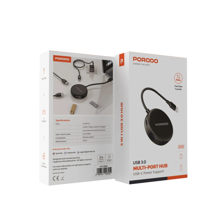 تعداد و نوع پورت هاب : 4X USB3 / 1X Type-C (فقط آداپتور ۵ ولت را برای تأمین برق اضافی به هاب وصل کنید)