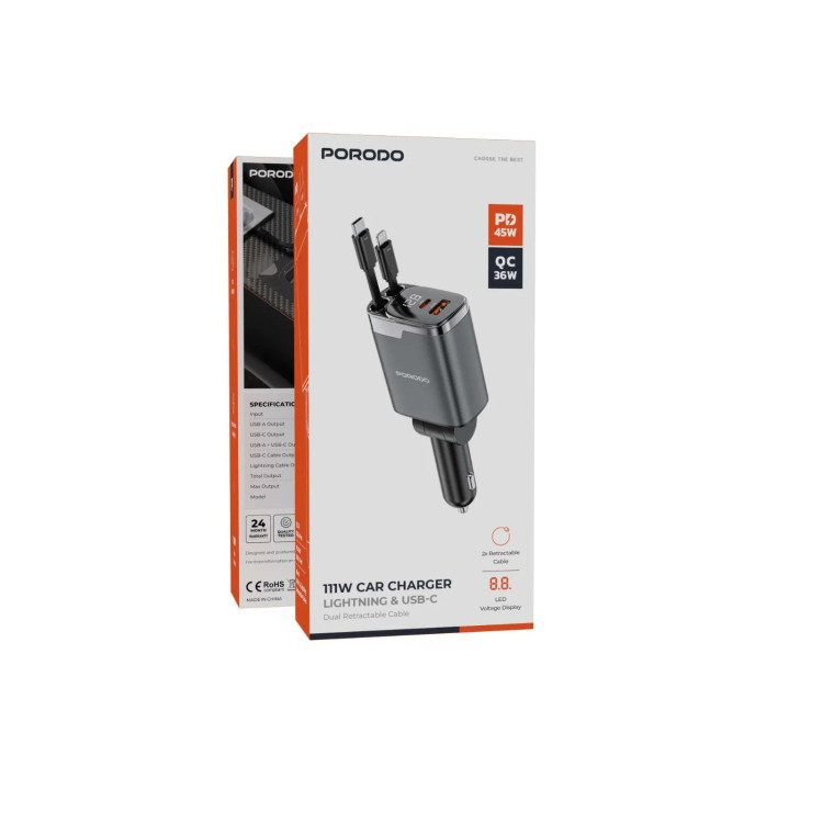 ویژگی های خاص : PD 45W / QC 36W / کابل جمعشونده دوگانه / حداکثر خروجی 111W / شارژ سریع شارژ همزمان / نمایشگر ولتاژ LED
