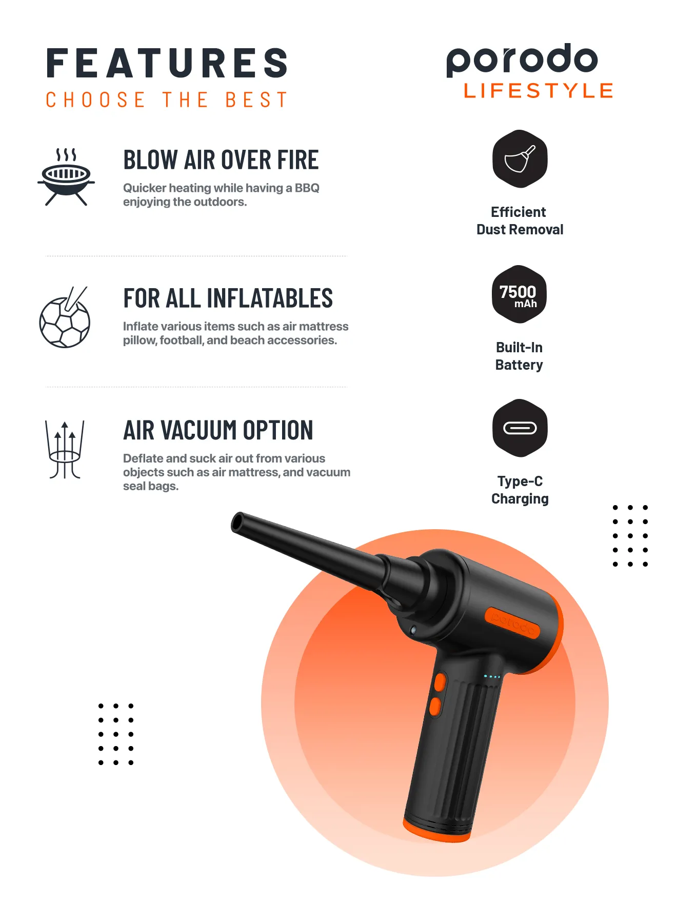 Porodo PD-PARDS Triple Speed Portable Air Duster with 4* Nozzles