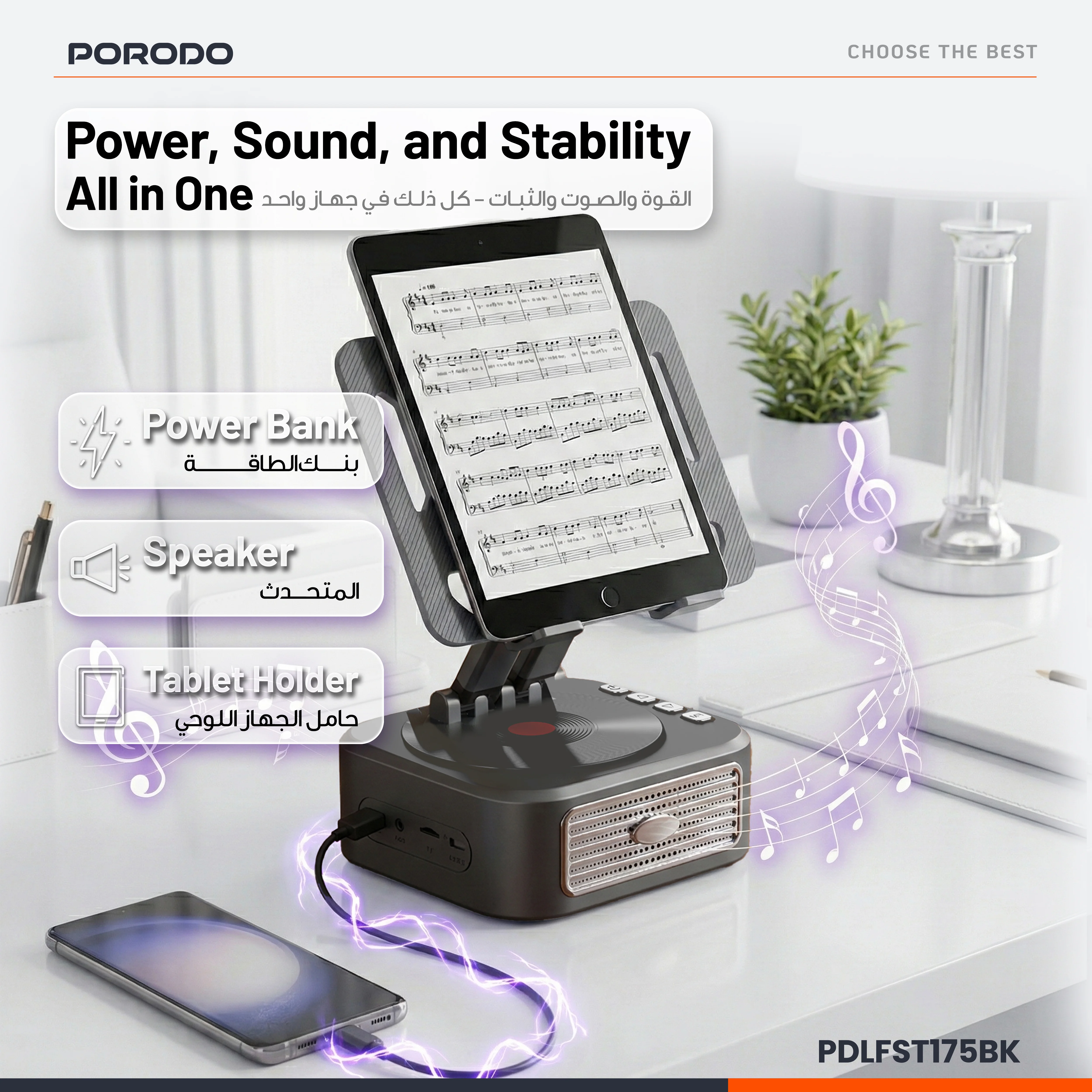 استند و اسپیکر و پاوربانک Porodo PDLFST175